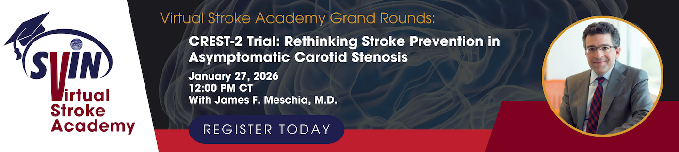 Join us on December 10 at Noon CT for a live roundtable discussion and Q&A featuring key takeaways from the 2025 SVIN Annual Meeting, presented by leading experts from SVIN and American Heart Association/American Stroke Association (AHA/ASA). This collaborative session will highlight important research, evolving treatment strategies, and novel techniques in stroke care. The webinar is hosted by AHA/ASA.