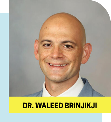 Waleed Brinjikji, M.D., performs research focused on improving the treatment of ischemic stroke and brain aneurysms using minimally invasive techniques. For patients with ischemic stroke, Dr. Brinjikji's research is focused on identifying the causes of the blockages in the patient's blood vessel and identifying and improving the devices that are used to remove these blockages.